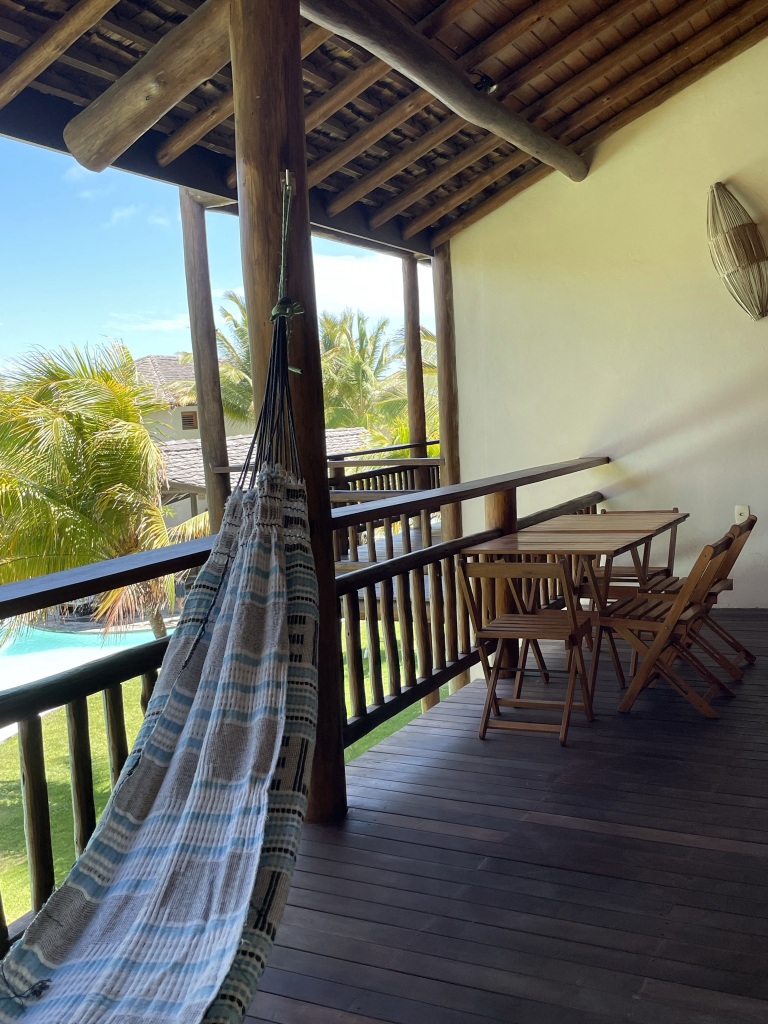 Al suo esterno , un confortevole balcone con amaca e tavolo da pranzo.